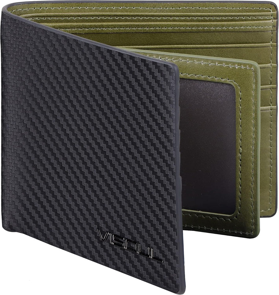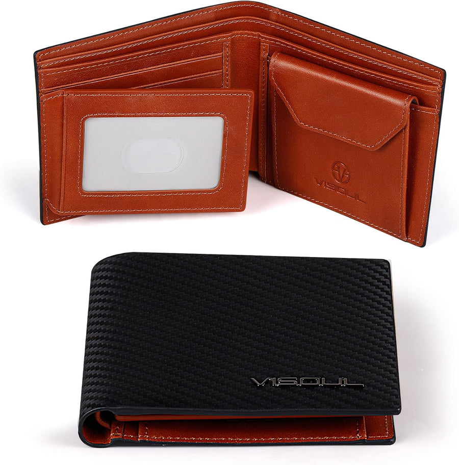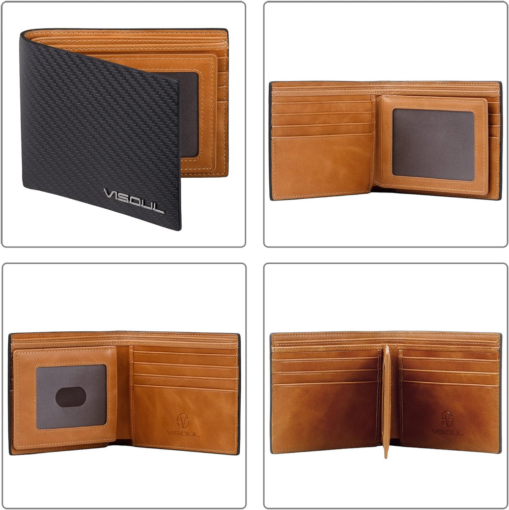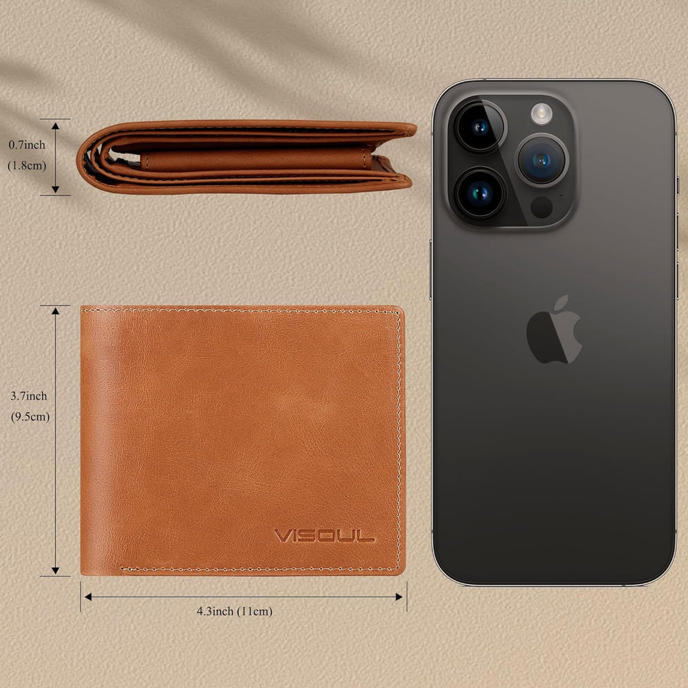VISOUL Leder Geldbörse Herren mit ID-Fenster/Münzfach & RFID Schutz I Echtleder Geldbeutel für Männe