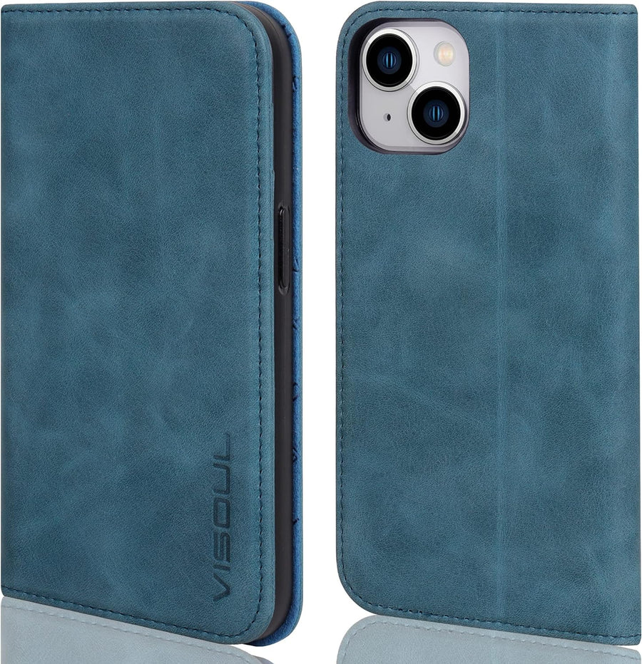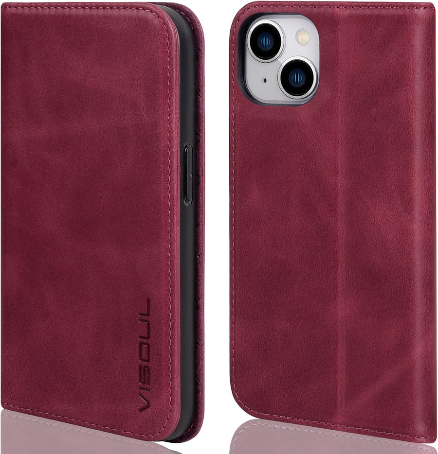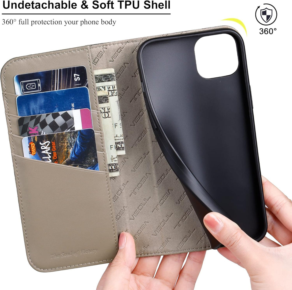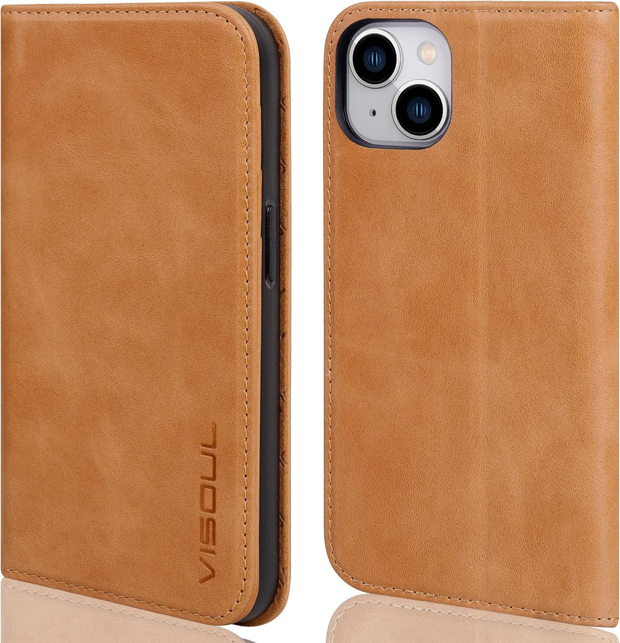VISOUL iPhone 14 Plus Hülle, Stossfeste Handyhülle [Erstklassiges Rindsleder], TPU Schutzhülle [Kart