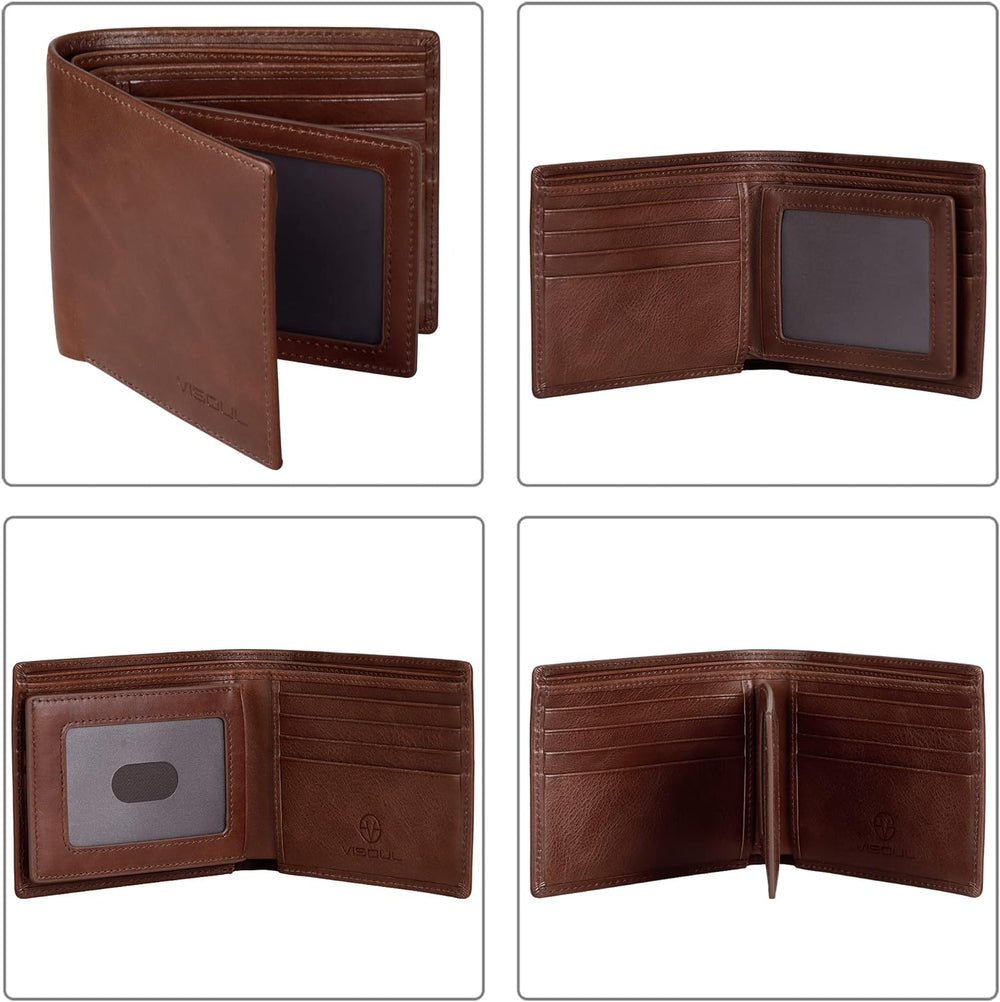 VISOUL Leder Geldbörse Herren mit ID-Fenster & RFID Schutz I Echtleder Geldbeutel für Männer I Porte