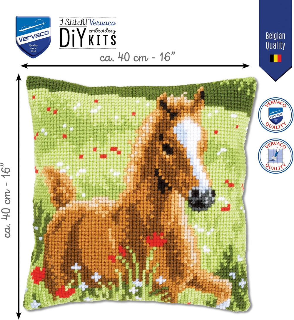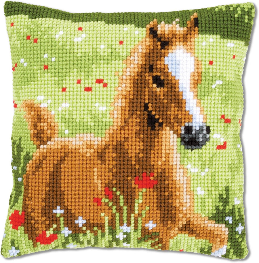 Vervaco Kreuzstichkissen Fohlen, Stickbild vorgezeichnet Kreuzstichpackung Kissen, vorbezeichnet, Ba