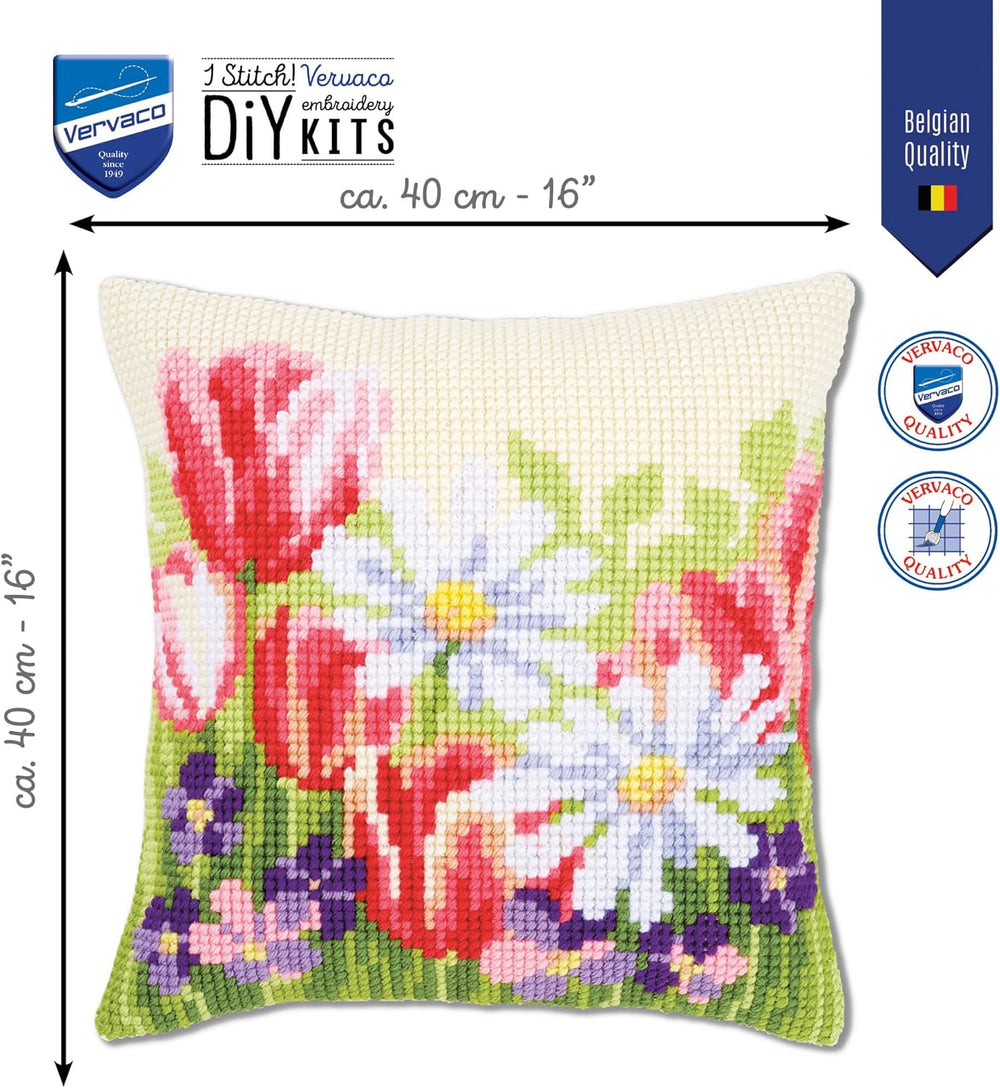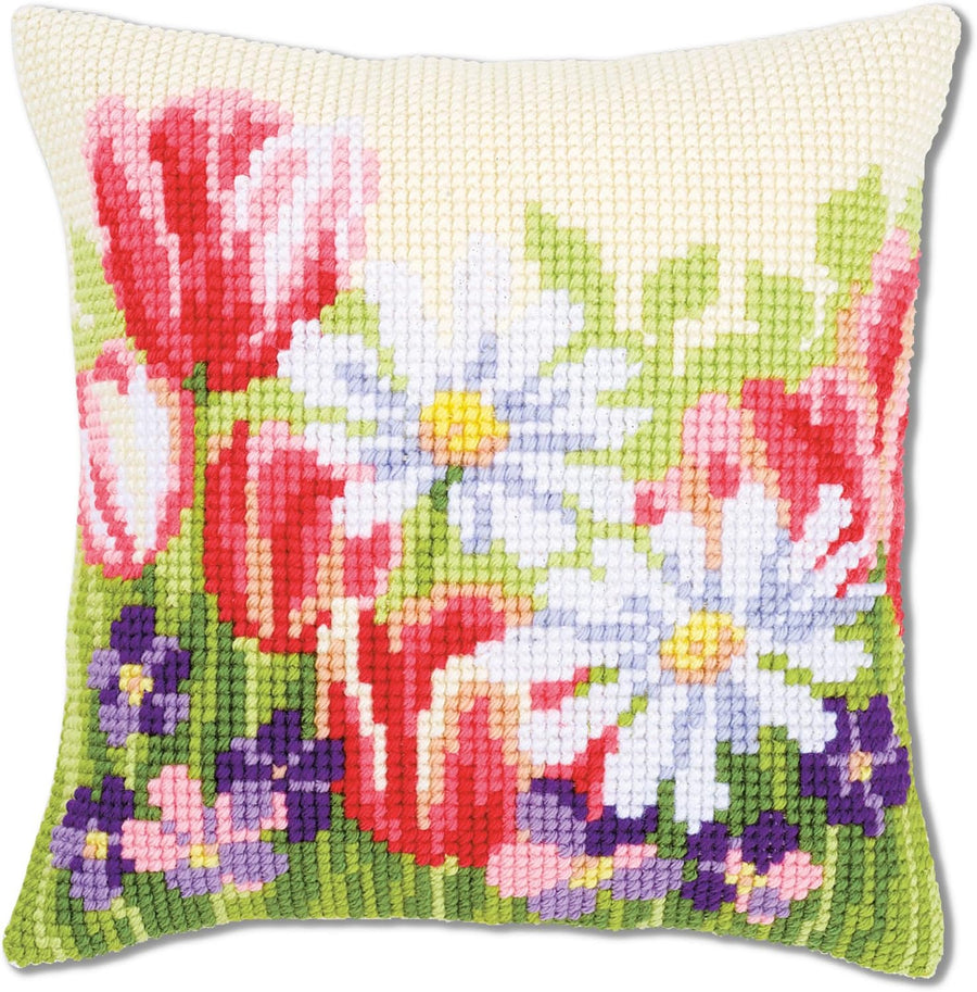 Vervaco Kreuzstichkissen Frühlingsblumen, Stickbild vorgezeichnet Kreuzstichpackung Kissen, vorbezei