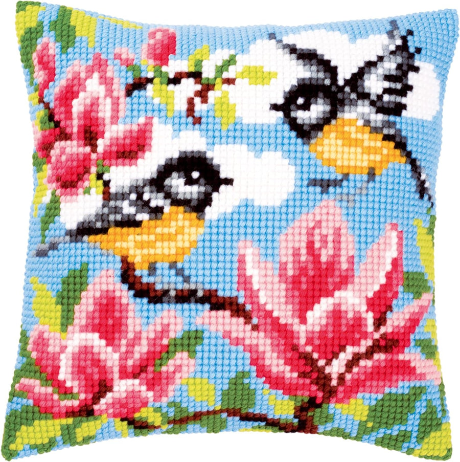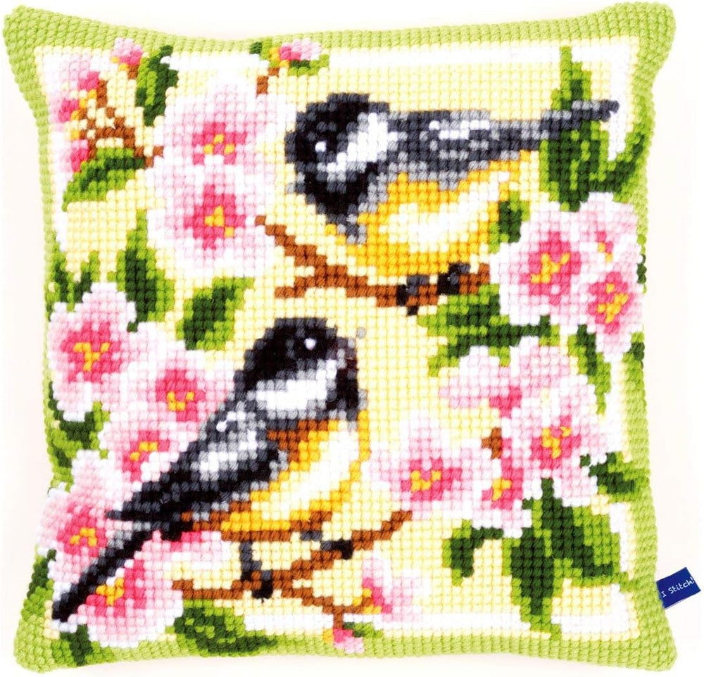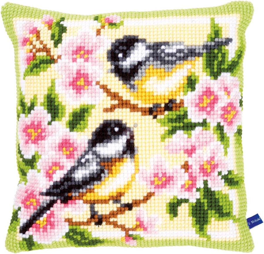 Vervaco Kreuzstichkissen 2 Kohlmeisen in Blumen Kreuzstichpackung Stickkissen vorgezeichnet, Stramin