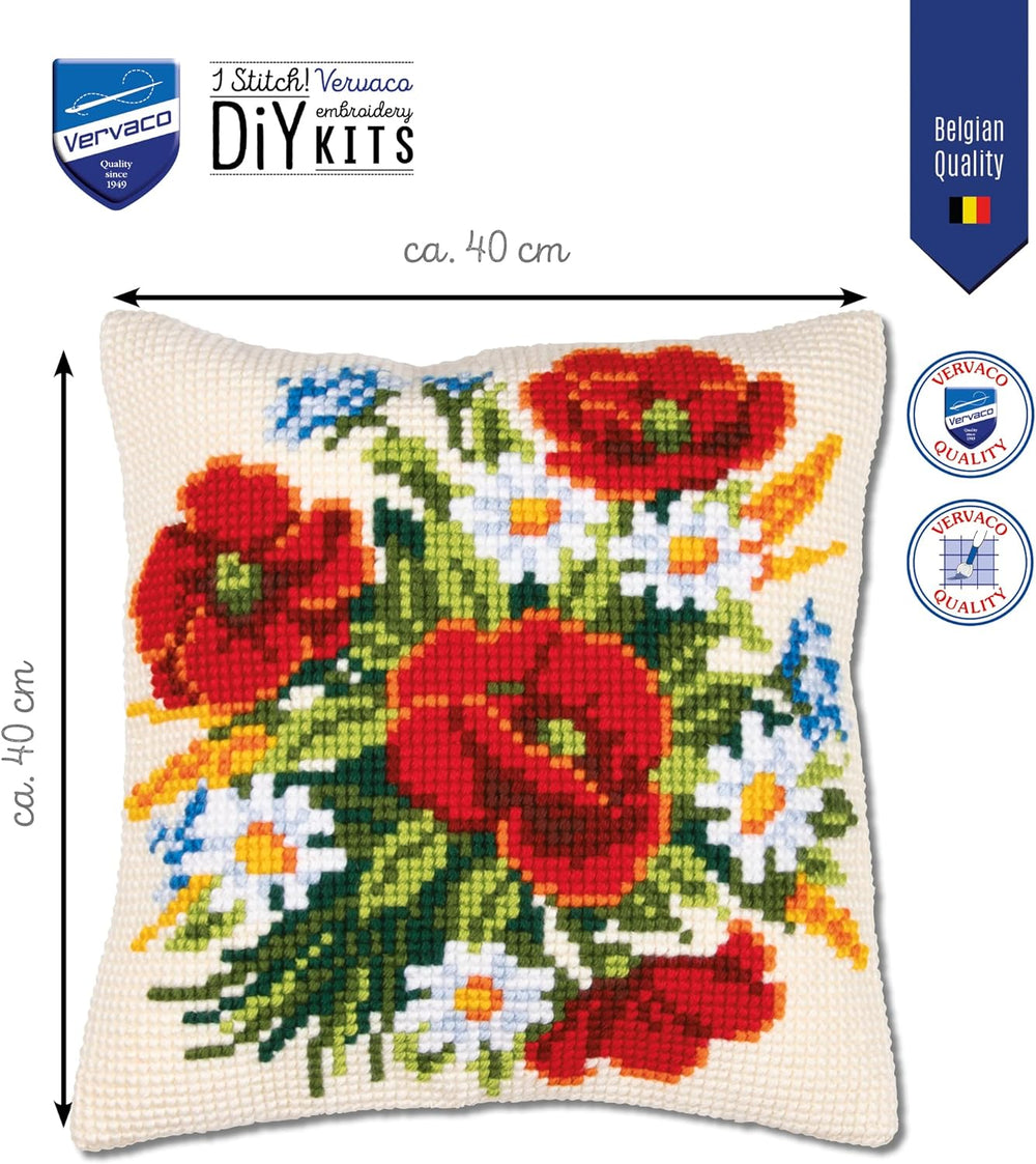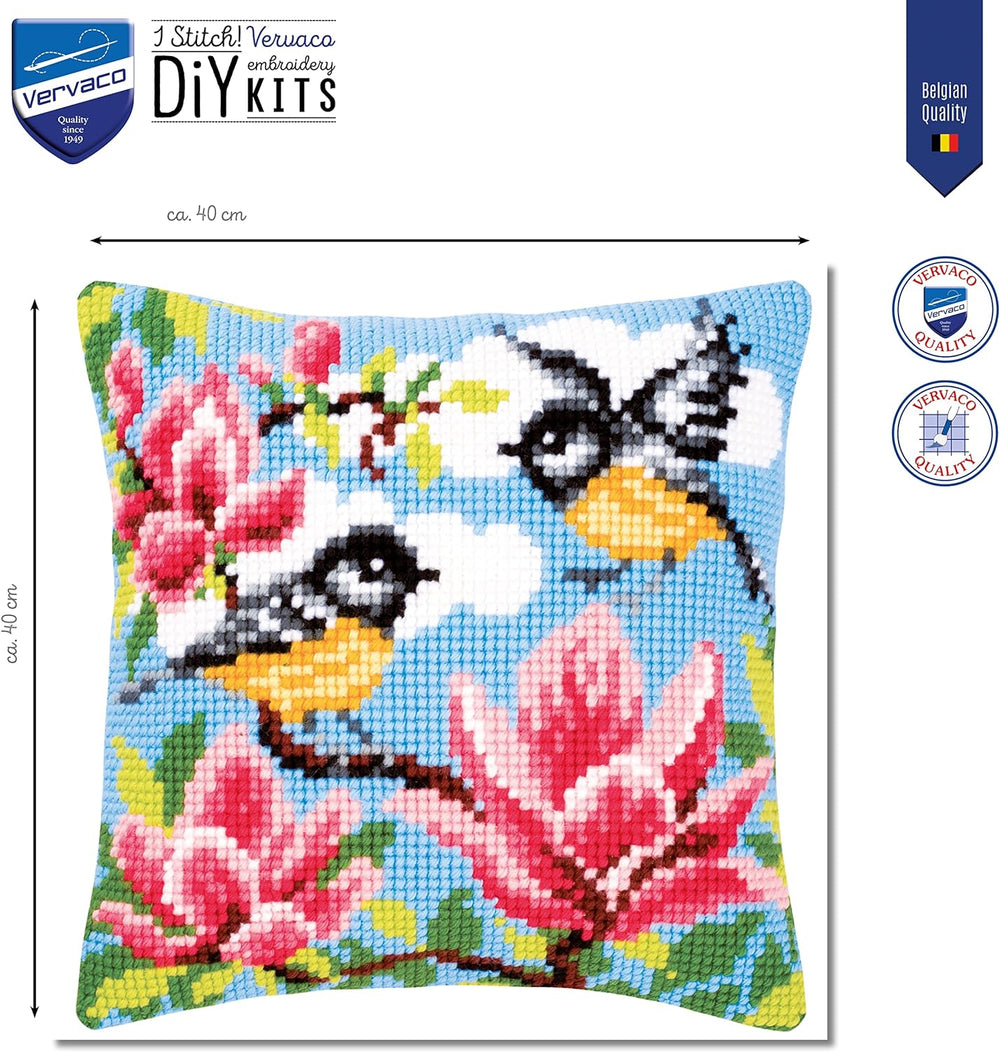 Vervaco Kreuzstich Stickpackungen Kissen Front zum Selbersticken mit Stickbild auf 100% Baumwoll Sto