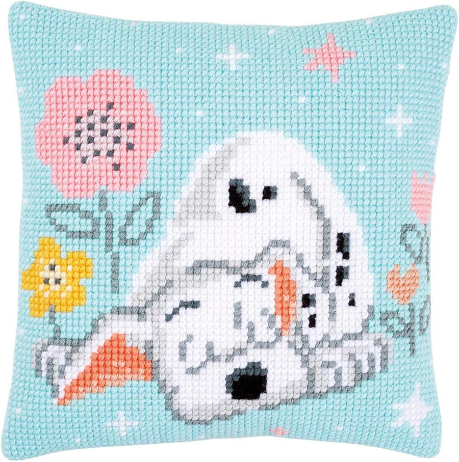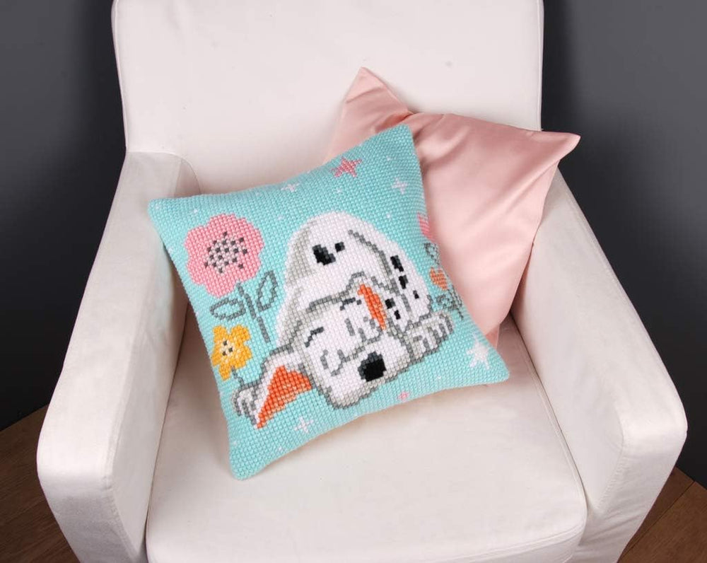 Vervaco Kreuzstichkissen 2 Kaninchen Kreuzstickpackung vorgedruckt, Stramin, weiss, 40 x 40 x 0,3 cm