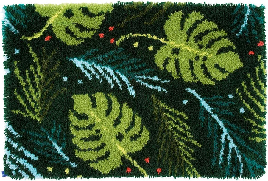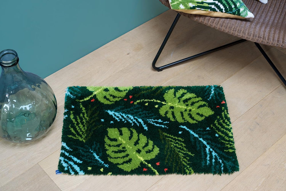 Vervaco Knüpfteppich Blätter Knüpfpackung, Baumwolle, Mehrfarbig, 70 x 45 x 0,3 cm