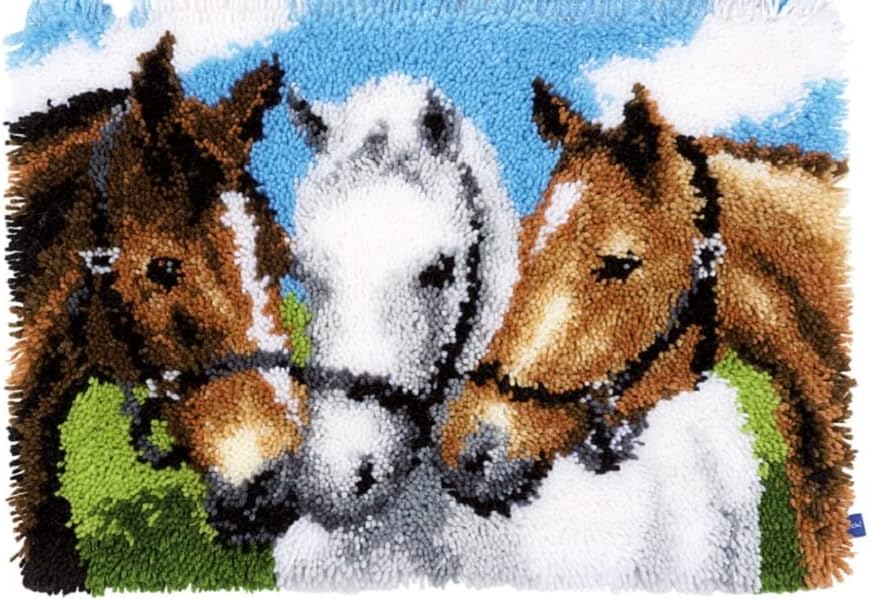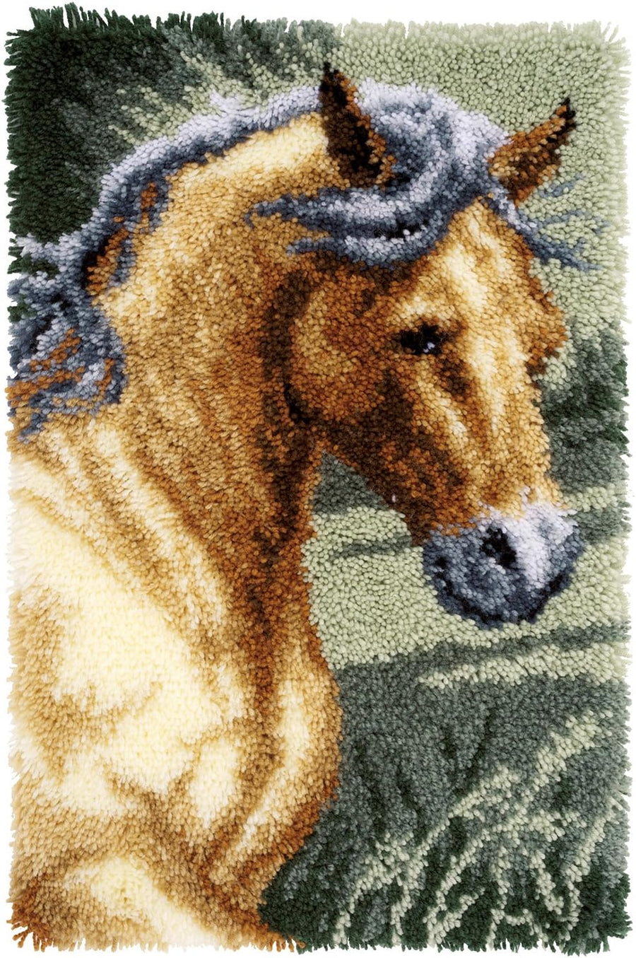 Vervaco Knüpfteppich Pferde Knüpfpackung, Baumwolle, Mehrfarbig, 55 x 38 x 0,3 cm