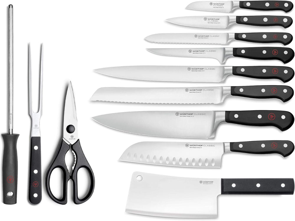 WÜSTHOF Classic Messerblock mit 12 Artikel 12-teilig Braune Esche, 12-teilig Braune Esche