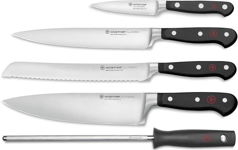 WÜSTHOF Classic Messergarnitur mit 6 Artikeln, Schwarz,silber 5 Kochmesser, Wetzstahl