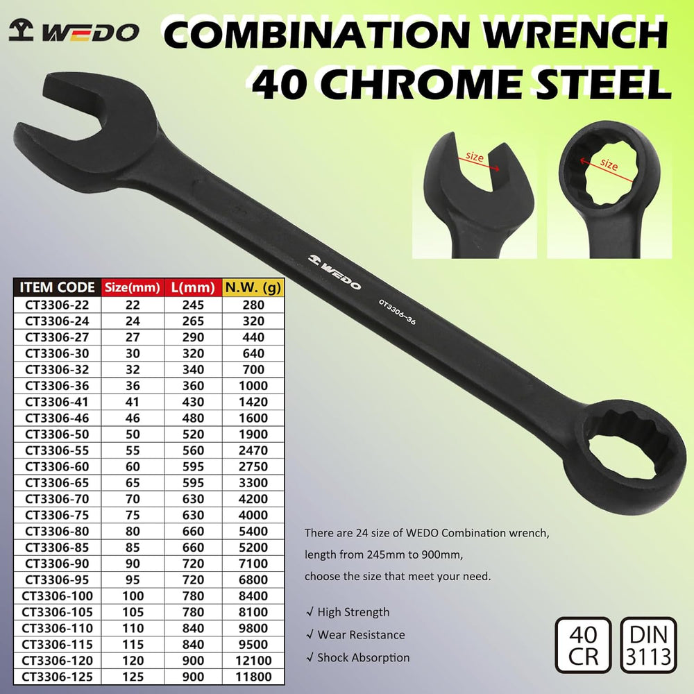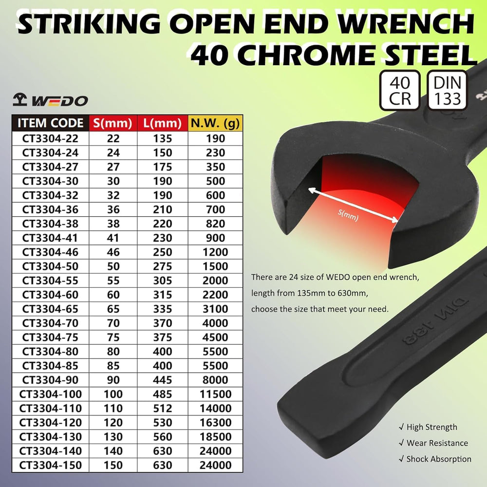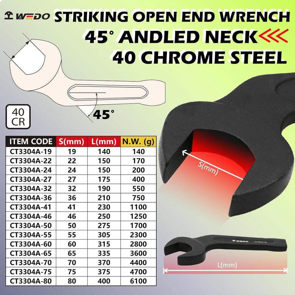 WEDO Jumbo Striking Open End Wrench, One-time Die Forged, Strong Torque, High Strength, 40 Chrome St
