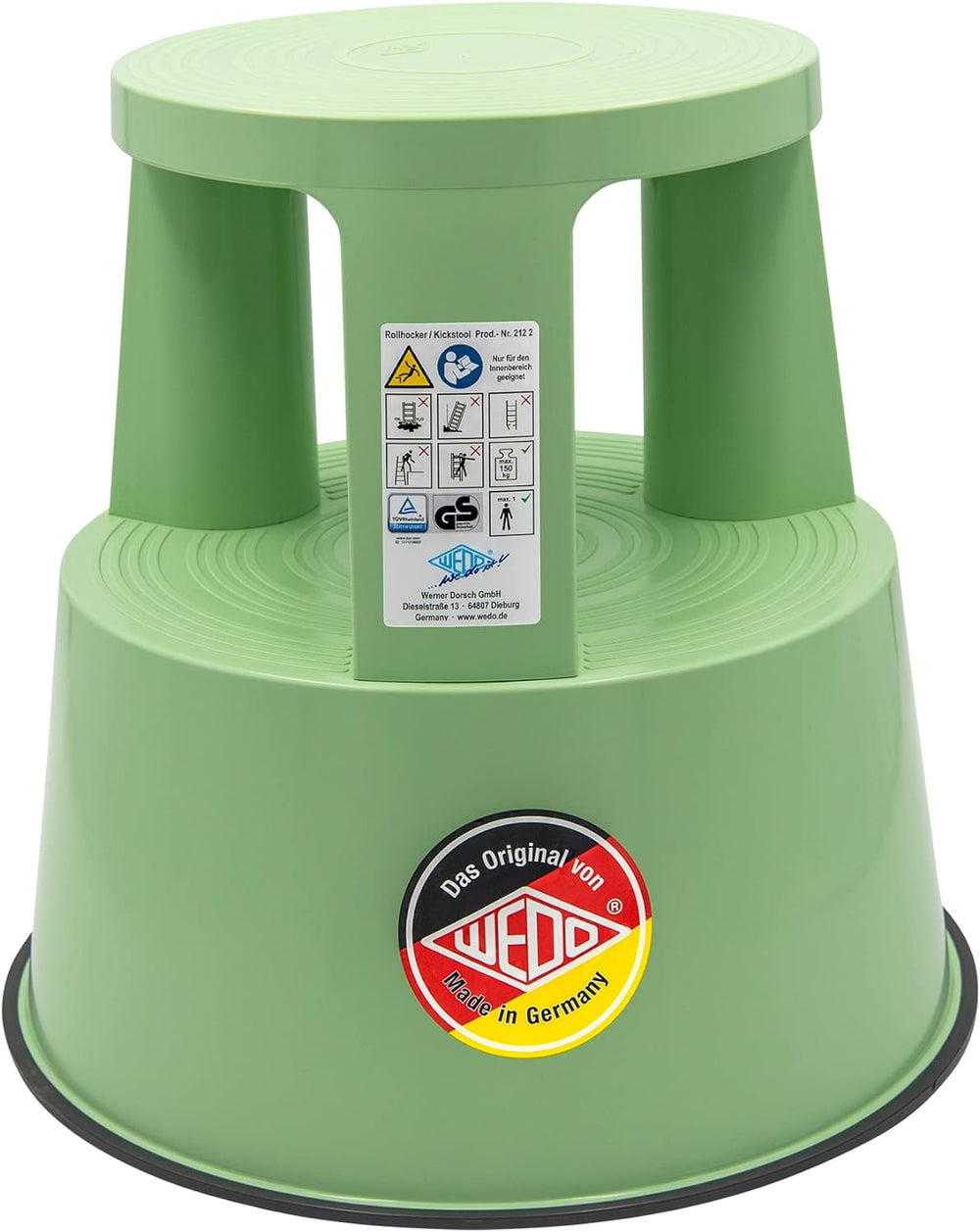 Wedo Rollhocker Step aus Kunststoff, bruchfest, rollbarer Tritthocker, TÜV-geprüft, Made in Germany,