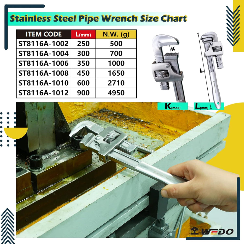 WEDO Einhand-Rohrzange,Edelstahl Rohrzangen,Länge 250mm(10") Zangenschlüssel,Einhandrohrzange,gerade