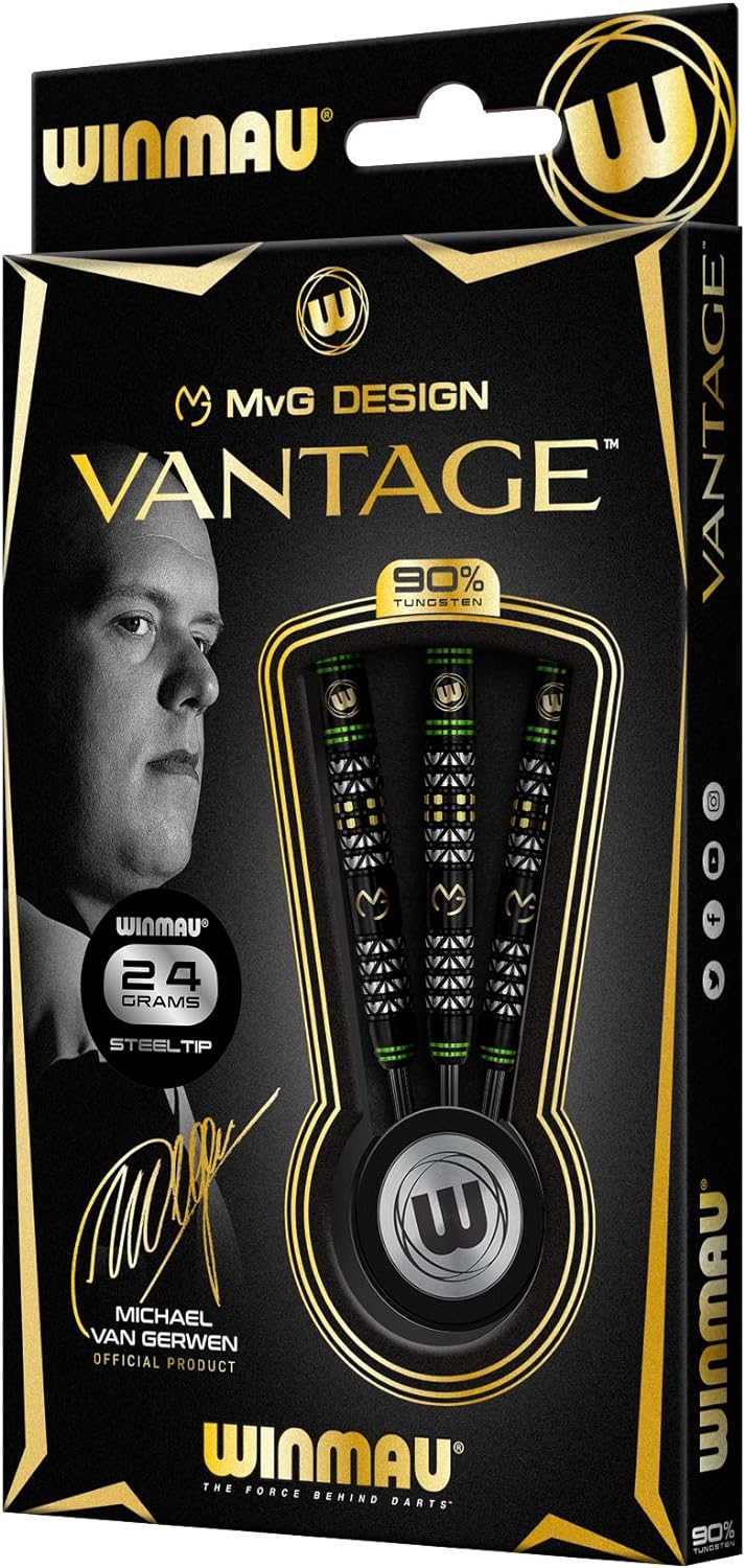 WINMAU Michael Van Gerwen MvG Vantage Tungsten Steeltip Darts Set 24 Gram with Prism Flights and Vec