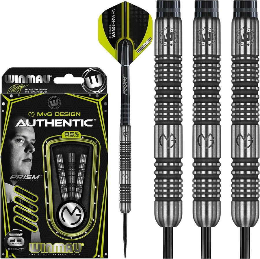 WINMAU Michael van Gerwen MvG Authentic Wolfram Steeltip Dart-Set mit Prismen-Flights und Schäften (