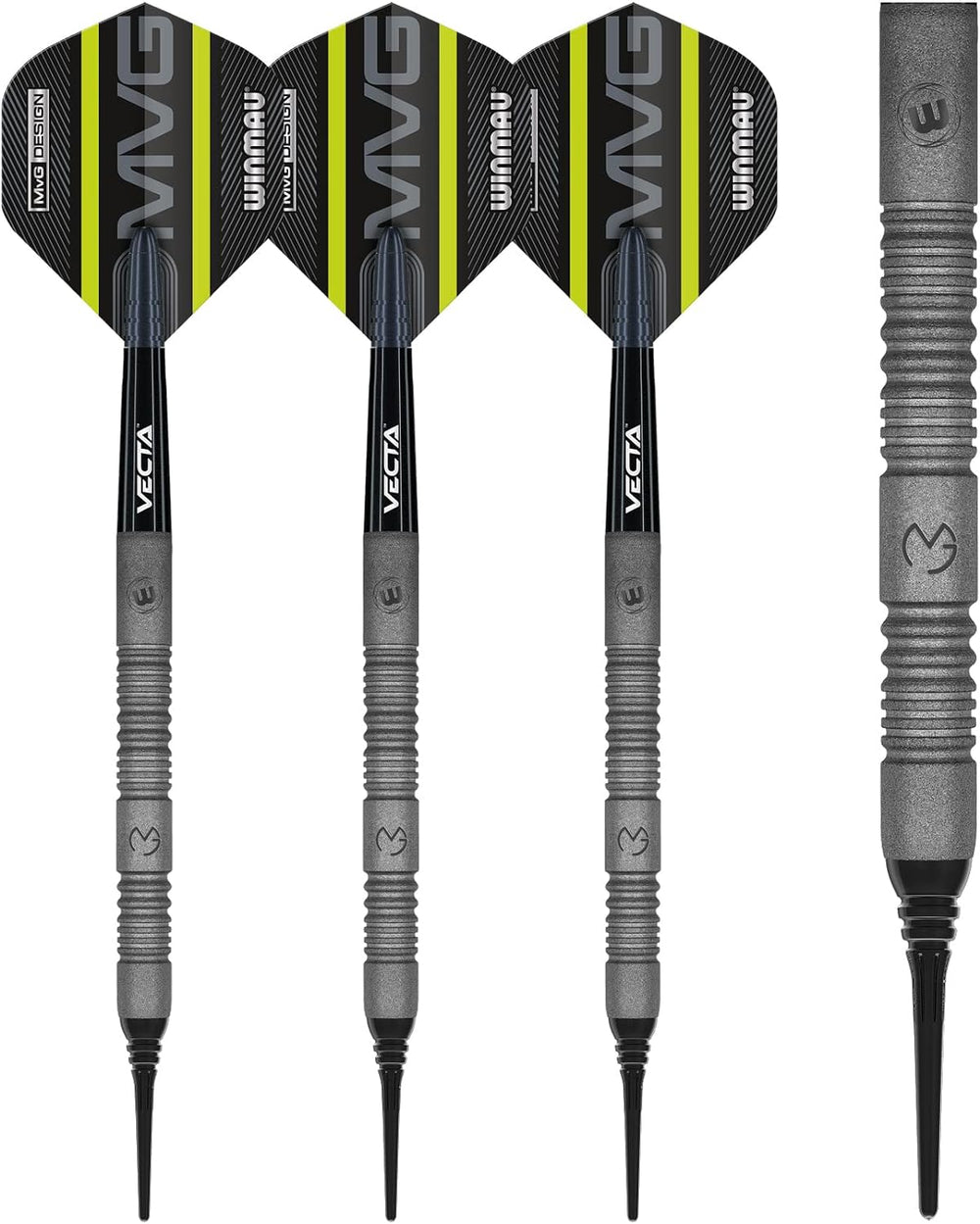 WINMAU MvG Exact 21.5 Gramm Profi Wolfram Softip Dartpfeile Set mit Flights und Schäfte