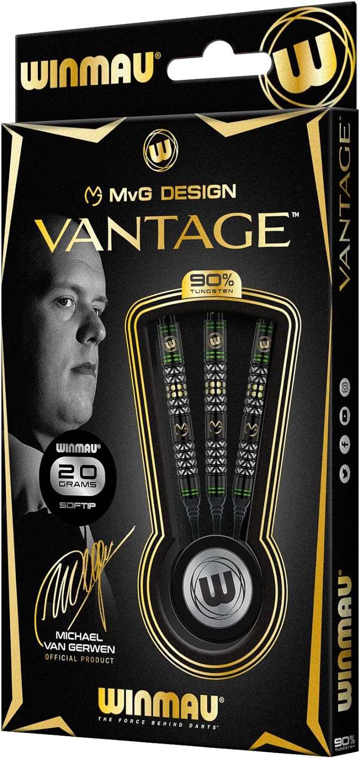 WINMAU Michael Van Gerwen MvG Vantage Tungsten Softip Darts Set 18 Gram with Prism Flights and Vecta
