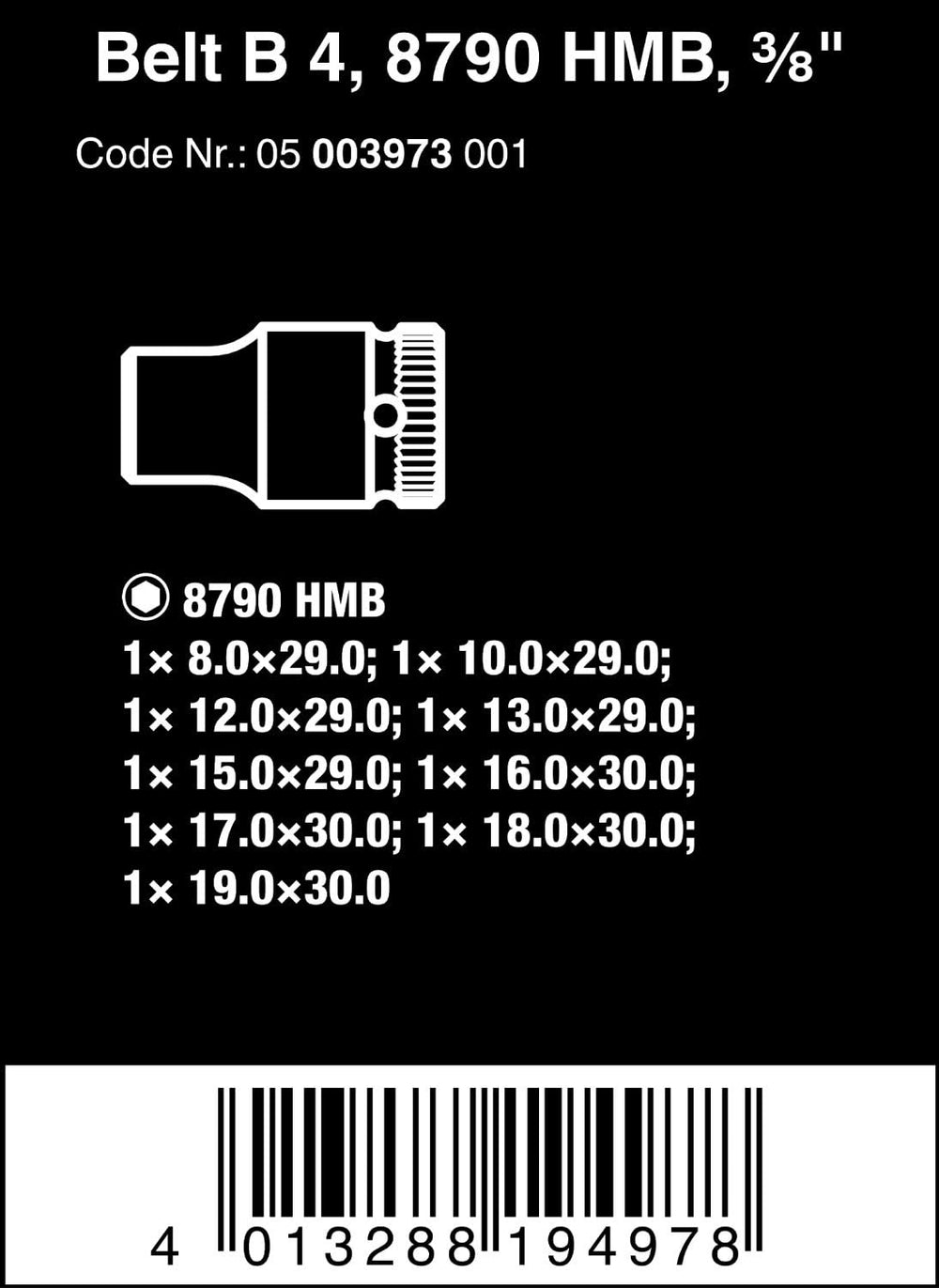 Wera 05003973001 Zyklop Steckschlüsseleinsätze Belt B 4, 3/8“-Antrieb, 9-teilig