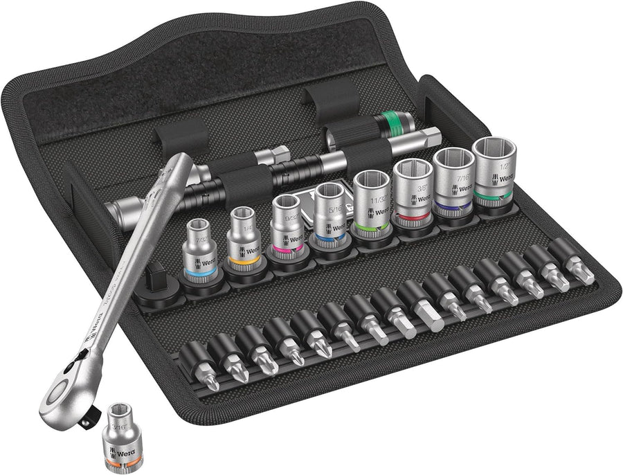 Wera 05004051001 8100 SB 11 Zyklop Metal-Knarrensatz, Umschalthebel, 3/8 Zoll -Antrieb, zöllig, 29-t
