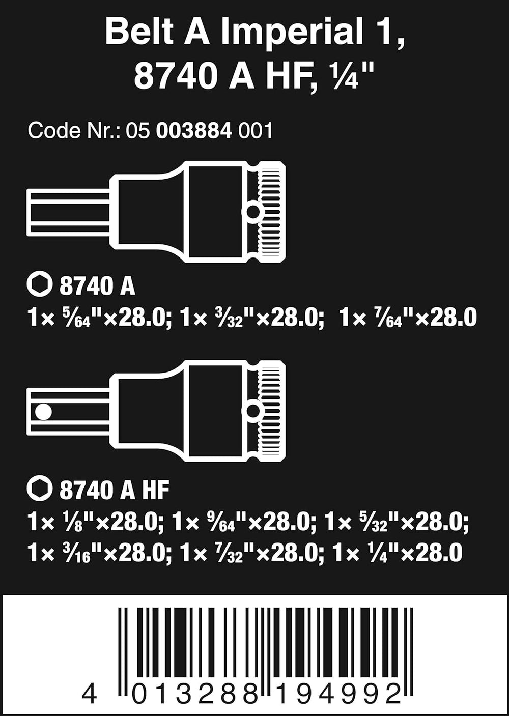 Wera 05003884001 Belt A Imperial 1 Zyklop Bitnuss-Satz Innensechskant, mit Haltefunktion, 1/4"-Antri