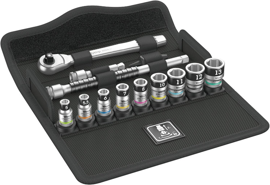 Wera 05004090001 8006 SC 1 Zyklop Hybrid-Knarrensatz, 1/2"-Antrieb, metrisch, 13-teilig, Schwarz, Gr