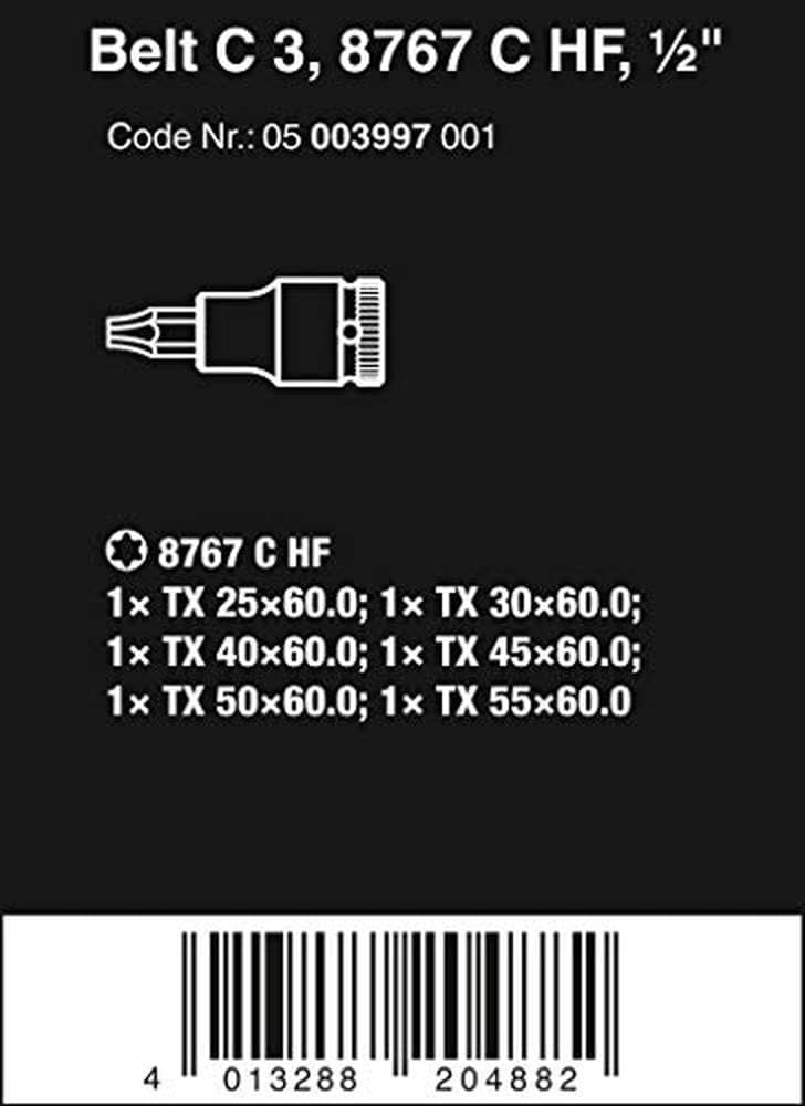 Wera 05003997001 Belt C 3, TORX® HF Zyklop Bitnuss-Satz, Torx, mit Haltefunktion, 1/2"-Antrieb, 6-te