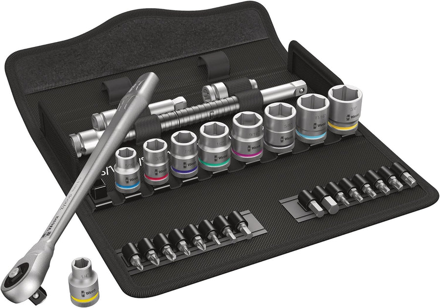 Wera 05004021001 8100 SA 11 Zyklop Metal-Knarrensatz, Umschalthebel, 1/4 Zoll -Antrieb, zöllig, 28-t
