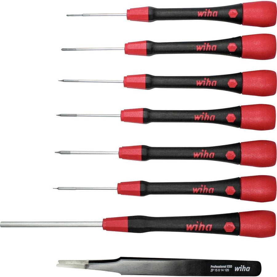 Wiha Feinschraubendreher Set PicoFinish®, 8 tlg. inkl. Pinzette, Reparatur-Set für Smartphones, Tabl