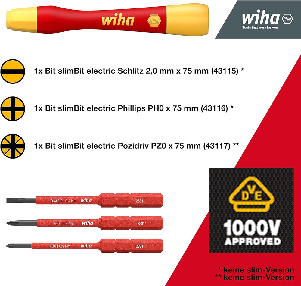 Wiha Feinschraubendreher Set PicoFinish® slimVario® electric 4-tlg. I mit slimBits I Präzisionsschra
