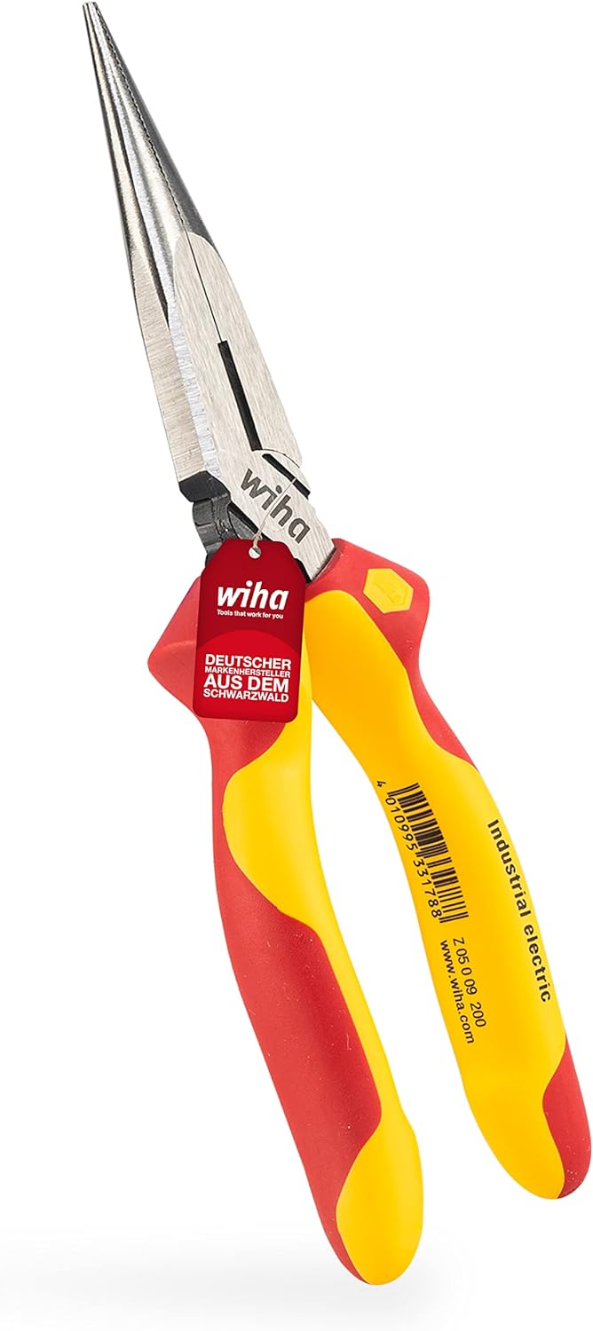 Wiha Flachrundzange Industrial electric mit Schneide gerade Form 200 mm Zange für Elektriker, VDE ge