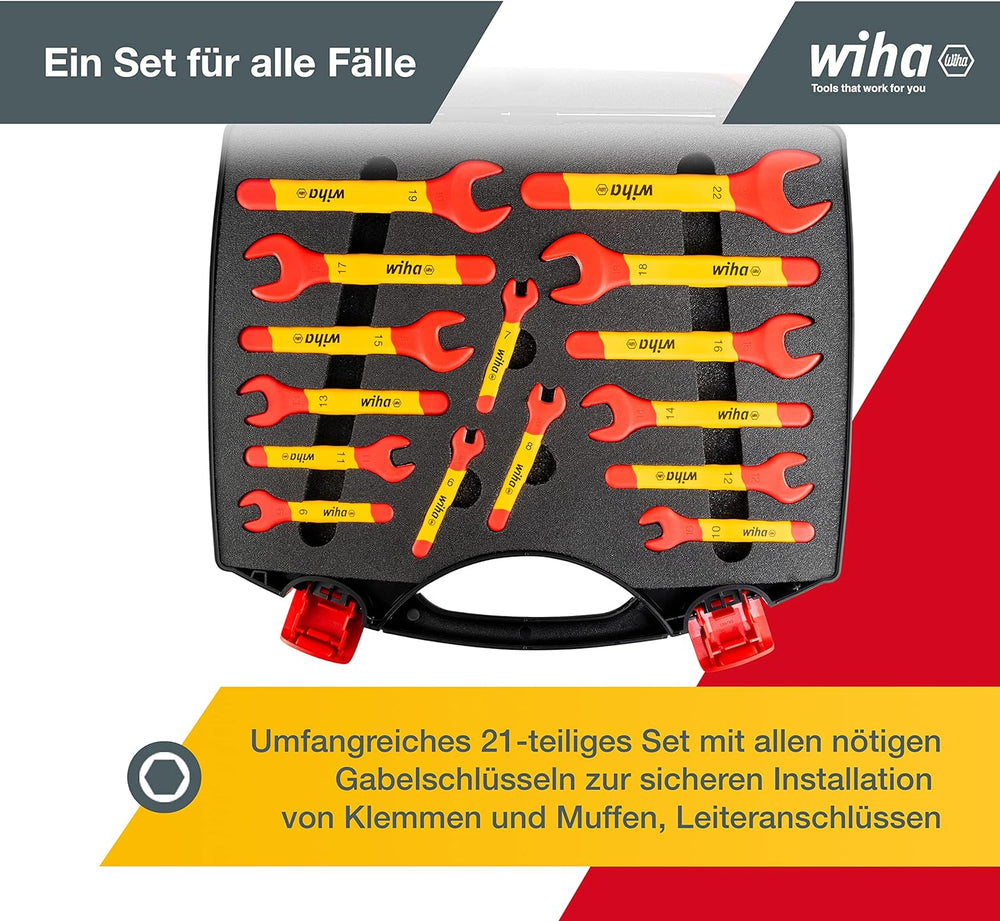 Wiha Einmaul-Gabelschlüssel Set isoliert 6-32mm, 21. tlg. (43022)