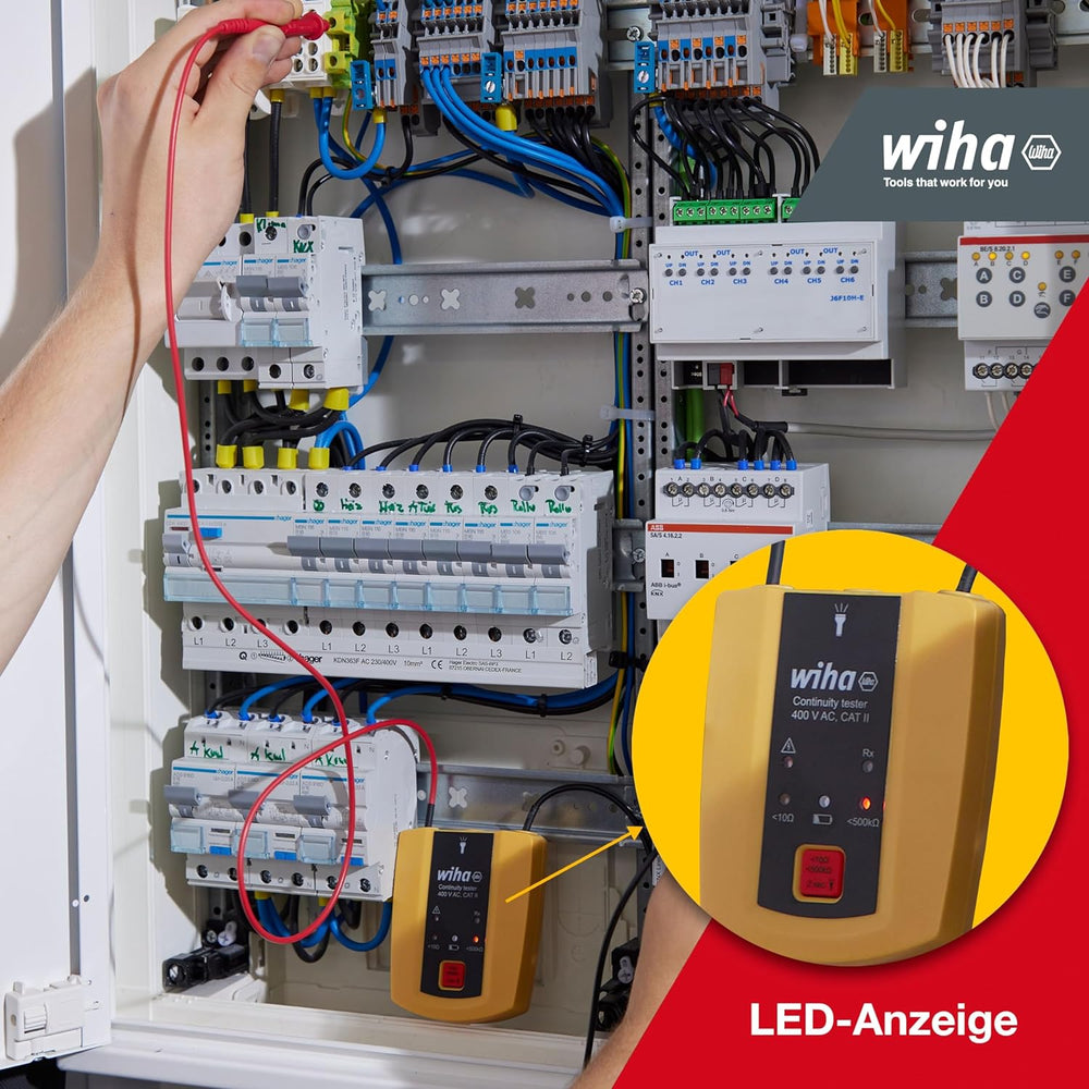 Wiha Durchgangsprüfer mit Ton bis 400 V AC, CAT II inkl. 2x AAA-Batterien I mit Taschenlampenfunktio