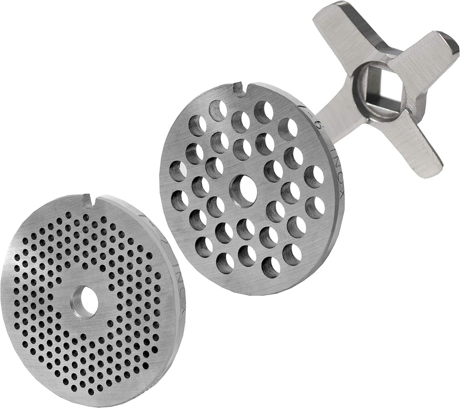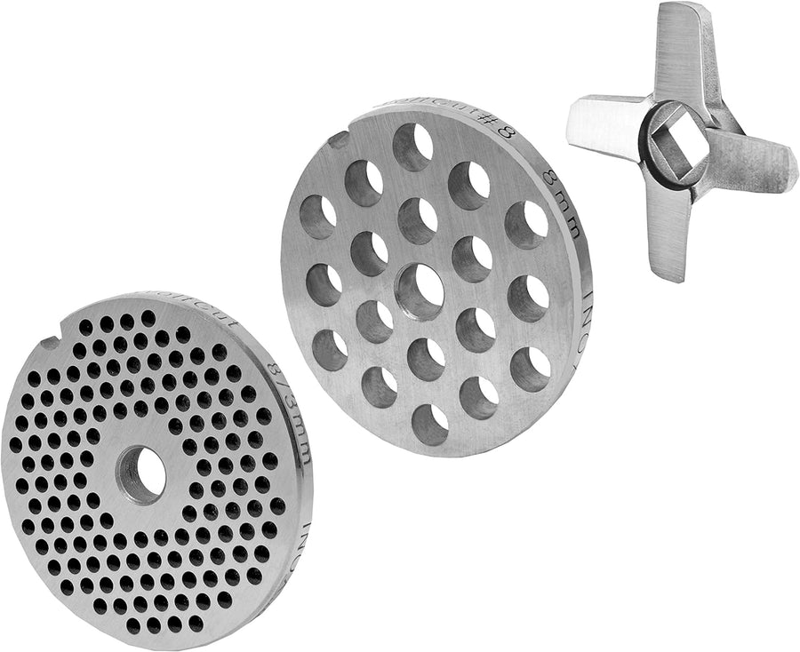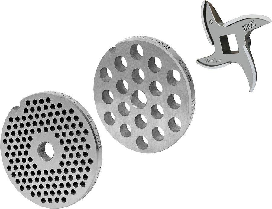 Wolfcut Lochscheibensatz kompatibel mit alle Fleischwolf Grössen 8 / 3mm + 8mm Bohrung und 1 Kreuzme
