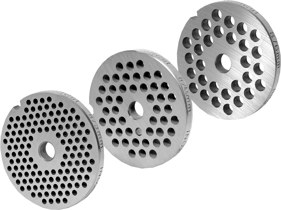 Wolfcut Lochscheibensatz kompatibel mit alle Fleischwolf Grössen 8 / 3MM + 4,5MM + 6,0MM Bohrung - k