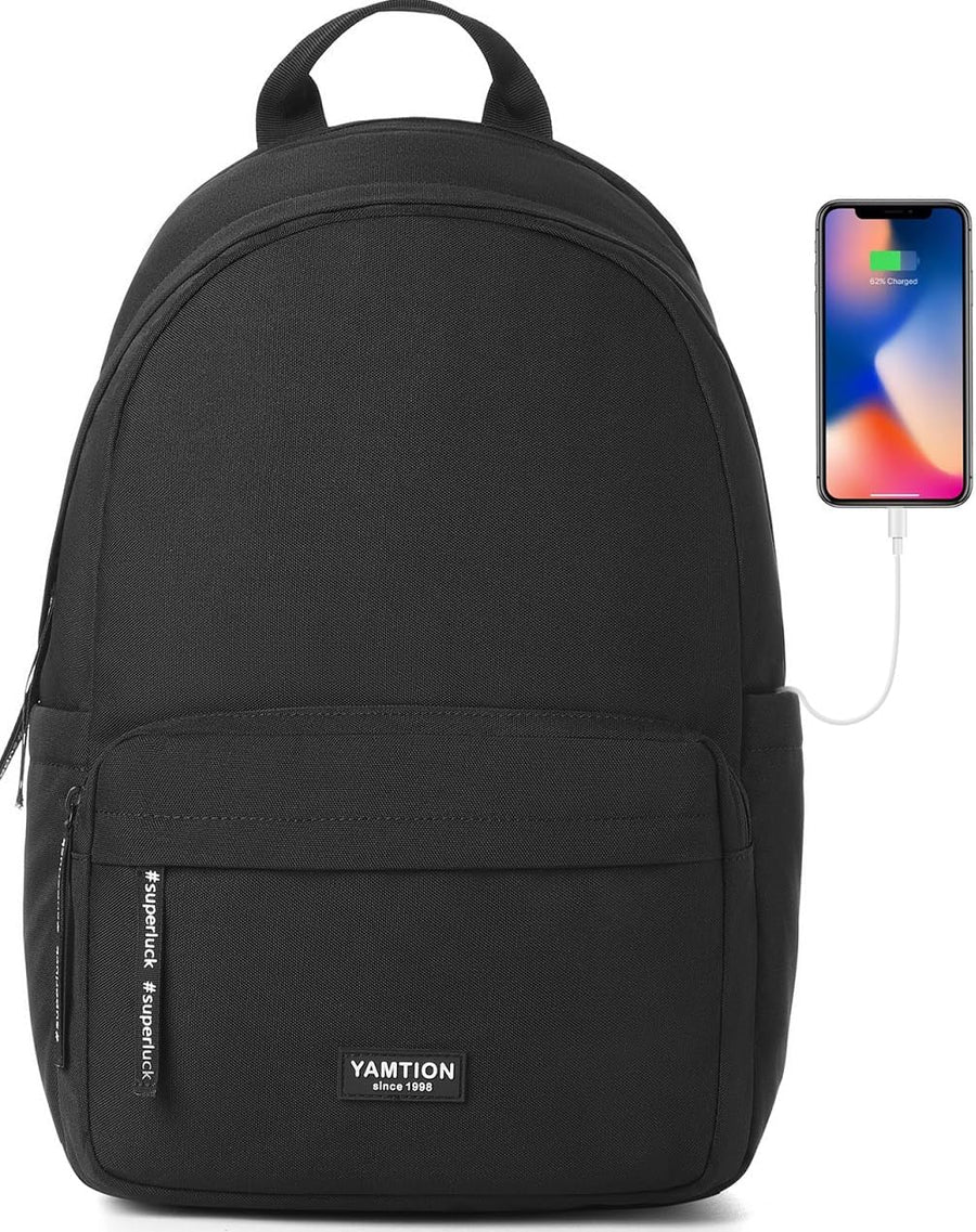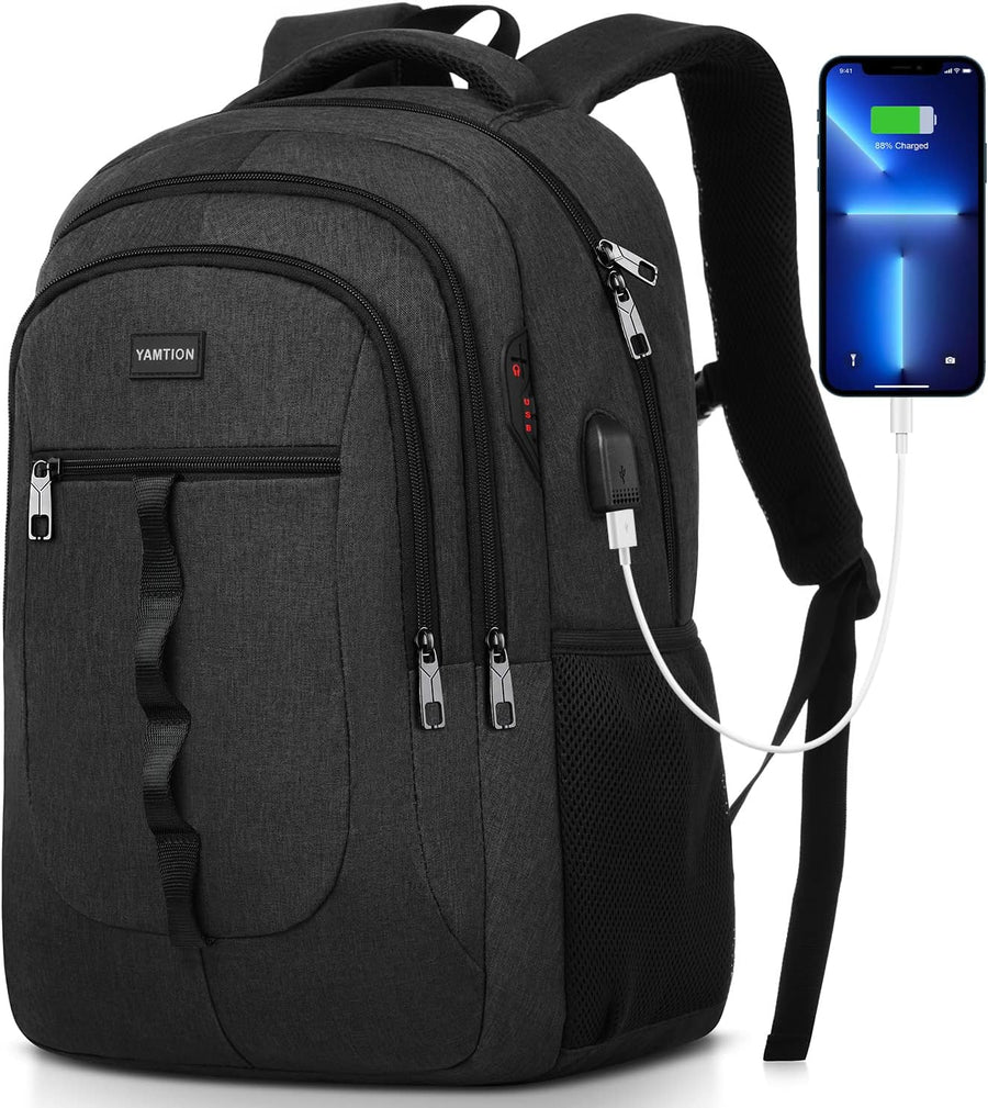 YAMTION Schwarz Rucksack Herren und Damen,Unisex Schulrucksack Teenager für Jungen Mädchen 17.3 Zoll