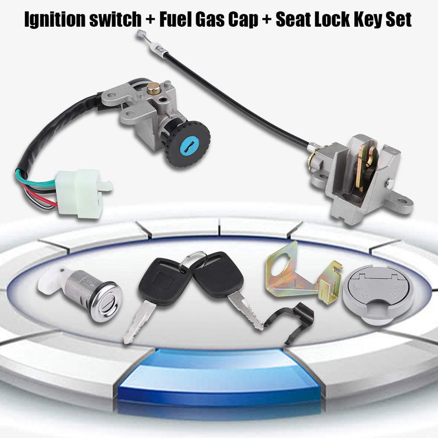 Yctze1 Set 5Pin Stecker 2 Schlüssel Zündschalter Schlüsselverriegelung Tankdeckel Set für Gy6 50ccm,
