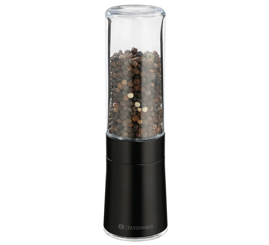 Zassenhaus Pfeffermühle DESSAU, zum Selbstbefüllen, Ø 5,5 cm H: 17 cm, schwarz, Glasbehälter, Kerami