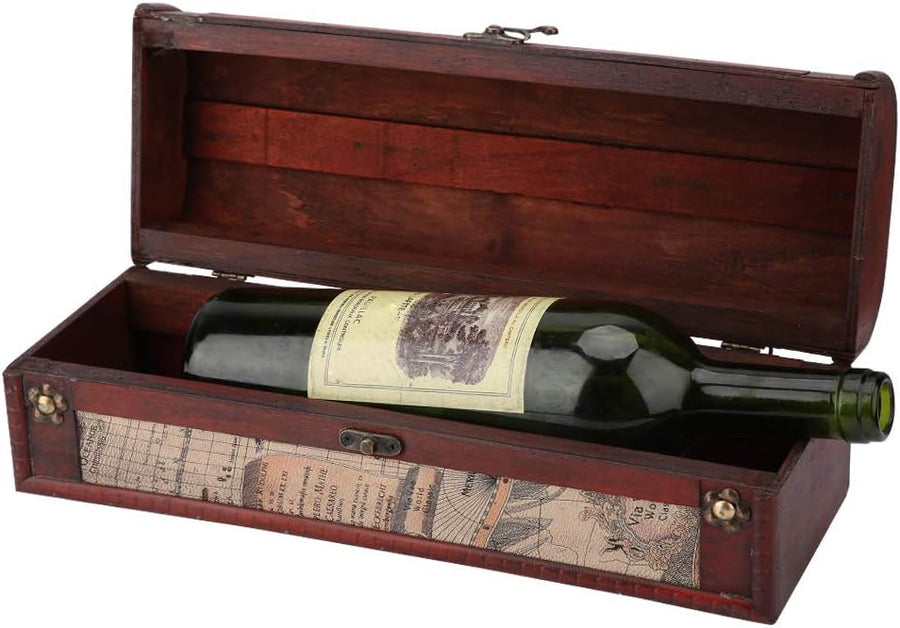 Holz-Weinflaschen-Box mit Antik-Finish, Antik-Holz-Deko-Wein-Box mit Deckel und Griff, Rotwein-Champ