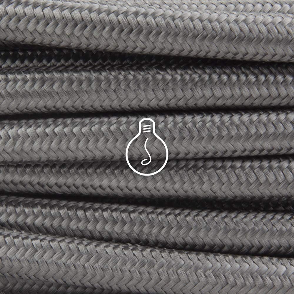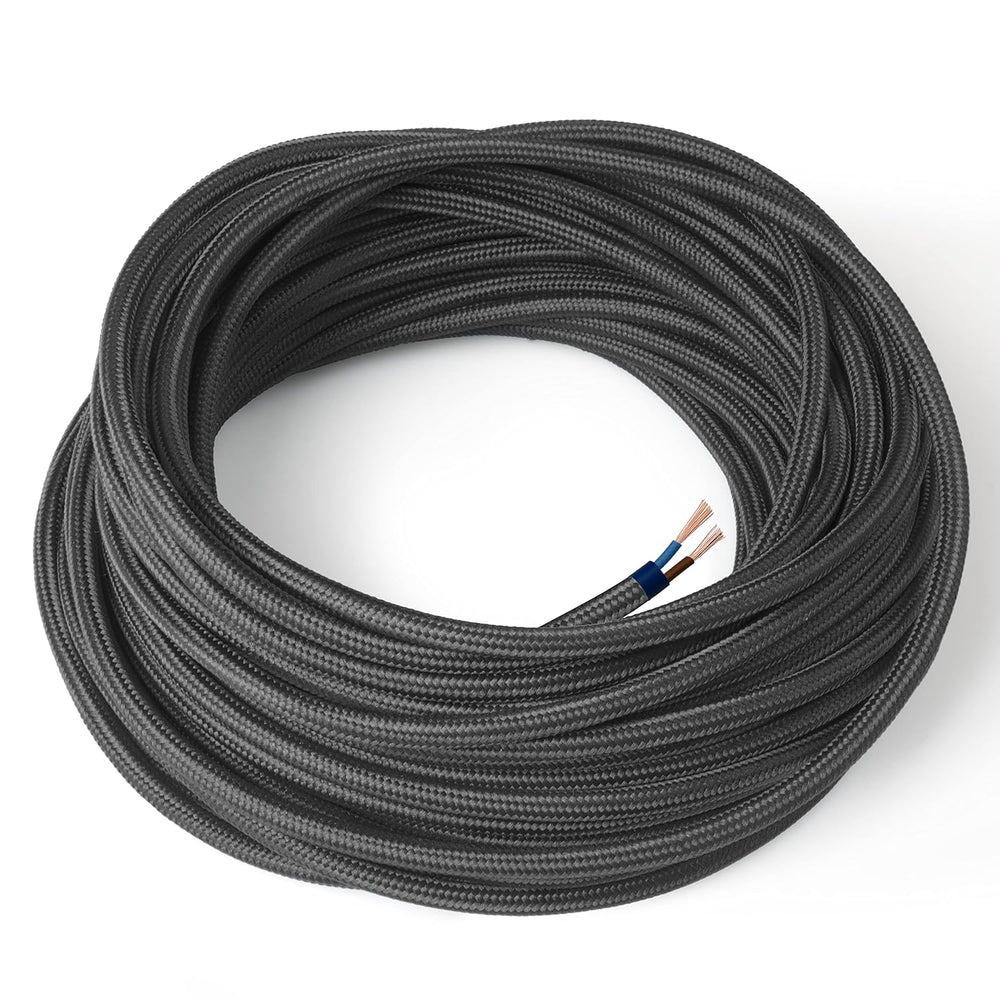 Amarcords - Textilkabel für Lampen DUNKELGRAU, rund, Seide, 30 Meter, mit 2 Leiter 2x0,75 - Stoffkab
