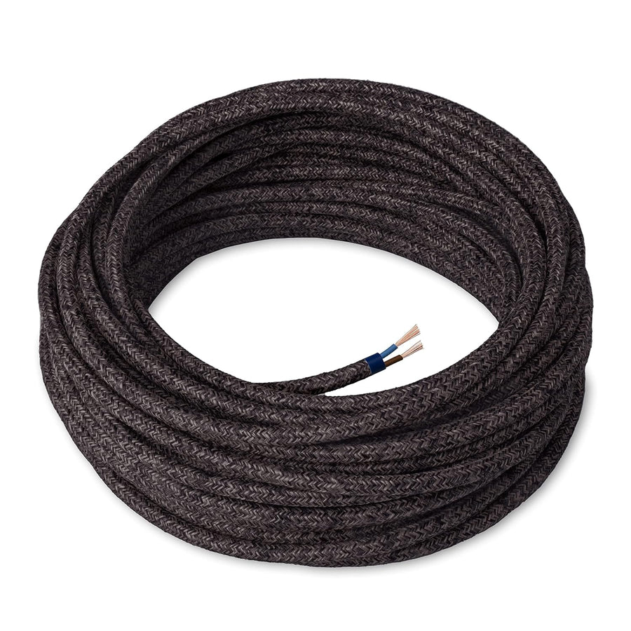 Amarcords - Textilkabel für Lampen CANVAS DUNKEL GRAU, rund, Leinen, 10 Meter, mit 2 Leiter 2x0,75 -
