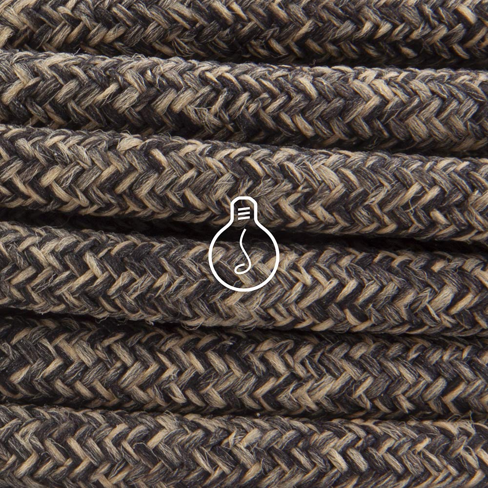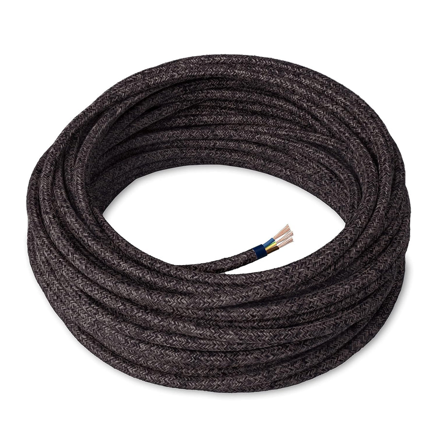 Amarcords - Textilkabel für Lampen CANVAS DUNKEL GRAU, rund, Leinen, 10 Meter, mit Erdung 3x0,75 - S