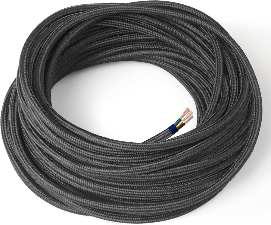 Amarcords - Textilkabel für Lampen DUNKELGRAU, rund, Seide, 30 Meter, mit Erdung 3x0,75 - Stoffkabel