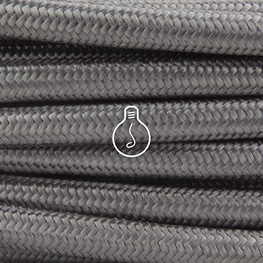 Amarcords - Textilkabel für Lampen DUNKELGRAU, rund, Seide, 50 Meter, mit 2 Leiter 2x0,75 - Stoffkab