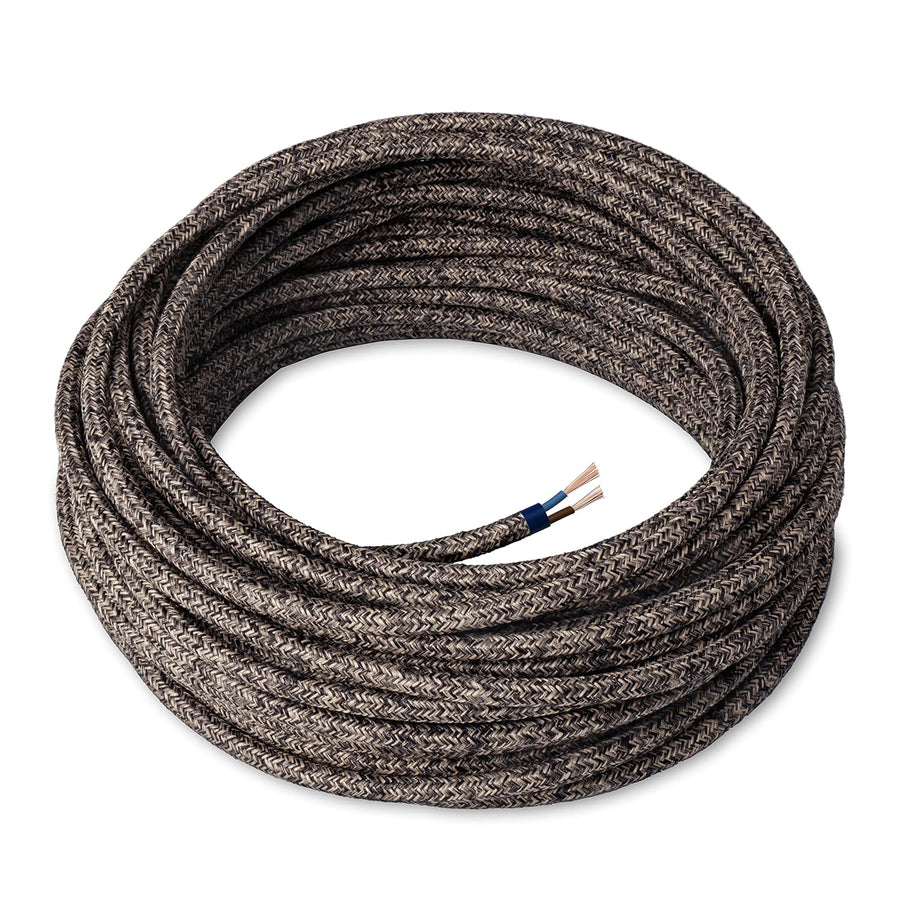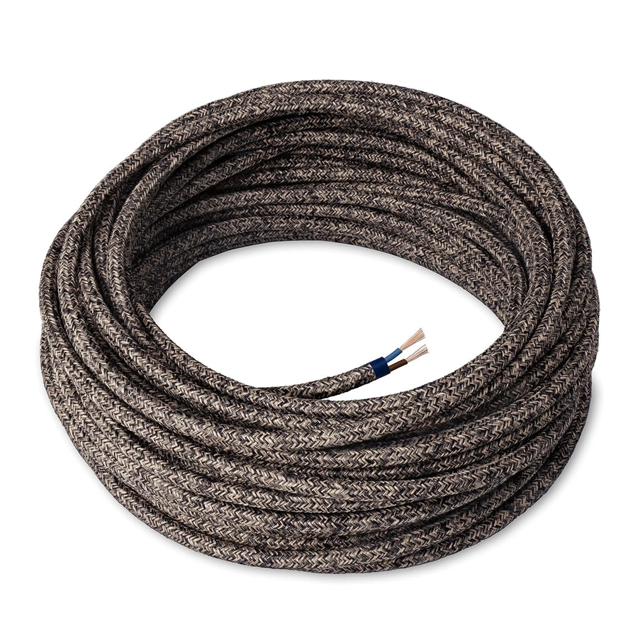 Amarcords - Textilkabel für Lampen CANVAS DUNKEL GRAU, rund, Leinen, 20 Meter, mit 2 Leiter 2x0,75 -