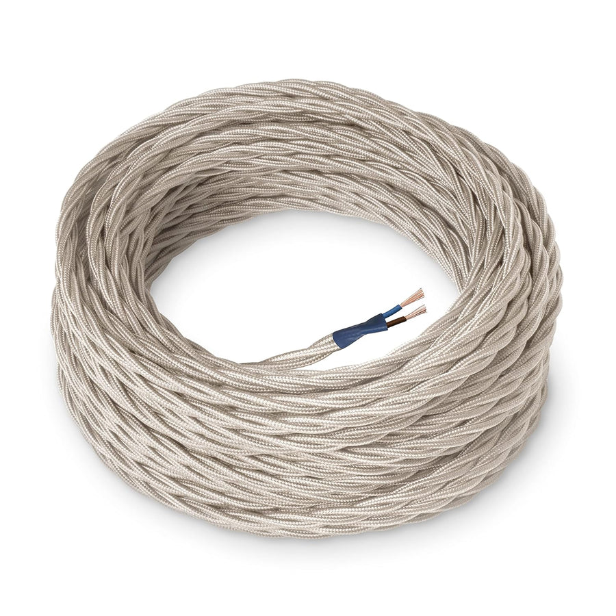 Amarcords - Textilkabel für Lampen ELFENBEIN, geflochten, Seide, 30 Meter, mit 2 Leiter 2x0,75 - Sto