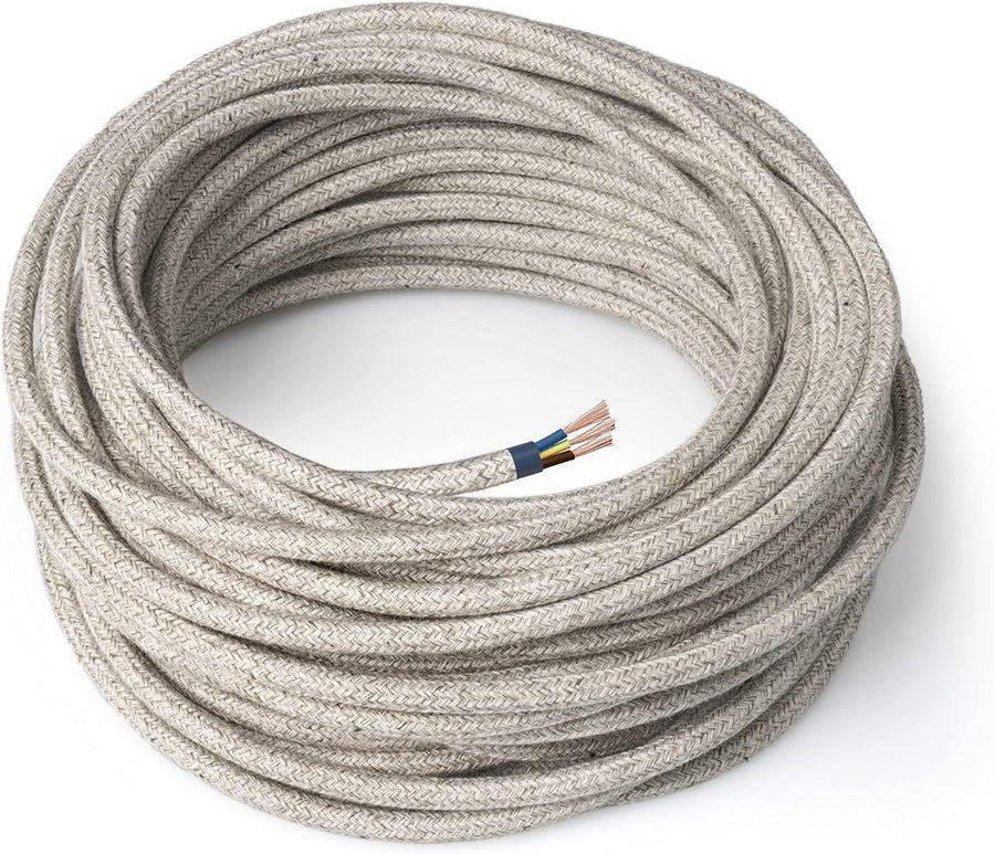 Amarcords - Textilkabel für Lampen CANVAS BEIGE, rund, Leinen, 30 Meter, mit Erdung 3x0,75 - Stoffka