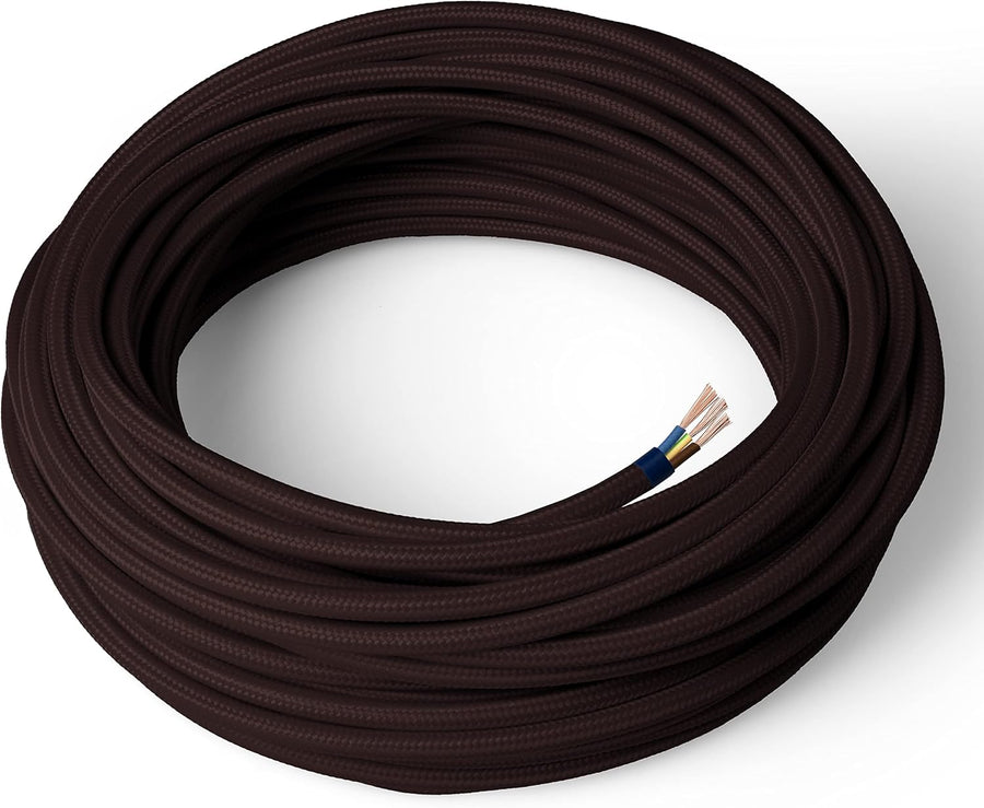 Amarcords - Textilkabel für Lampen BRAUN, rund, Seide, 20 Meter, mit Erdung 3x0,75 - Stoffkabel mit