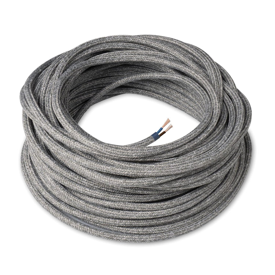 Amarcords - Textilkabel für Lampen CANVAS HELLGRAU, rund, Leinen, 20 Meter, mit 2 Leiter 2x0,75 - St