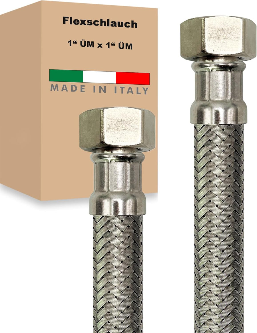 Flexschlauch DN25-1" Edelstahl Panzerschlauch Sanitär Hauswasserwerk - Made in Italy (1" ÜM x 1" ÜM,
