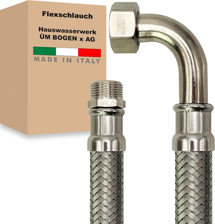 Flexschlauch DN13-1/2" Edelstahl Panzerschlauch Sanitär Hauswasserwerk - Made in Italy (1/2" ÜM x 1/