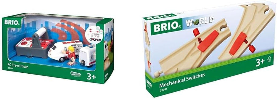 BRIO World - 33599 Akku Lok mit Mini USB & Bahn 33344 - Mechanisches Weichenpaar - Eisenbahnzubehör