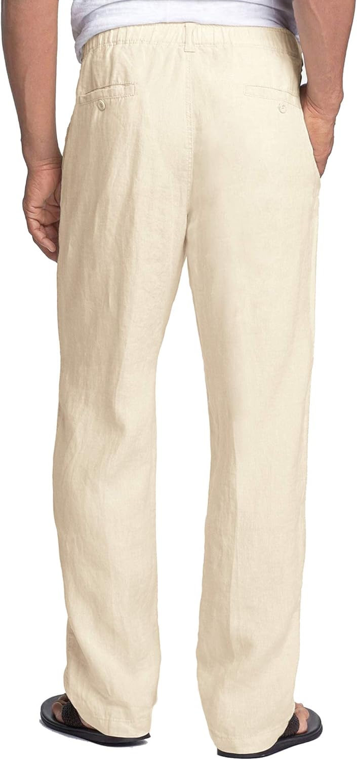COOFANDY Herren Hose Lange Leinenhose Leicht Sommerhose Strandhose Elastische Taille Hosen Männer Fr